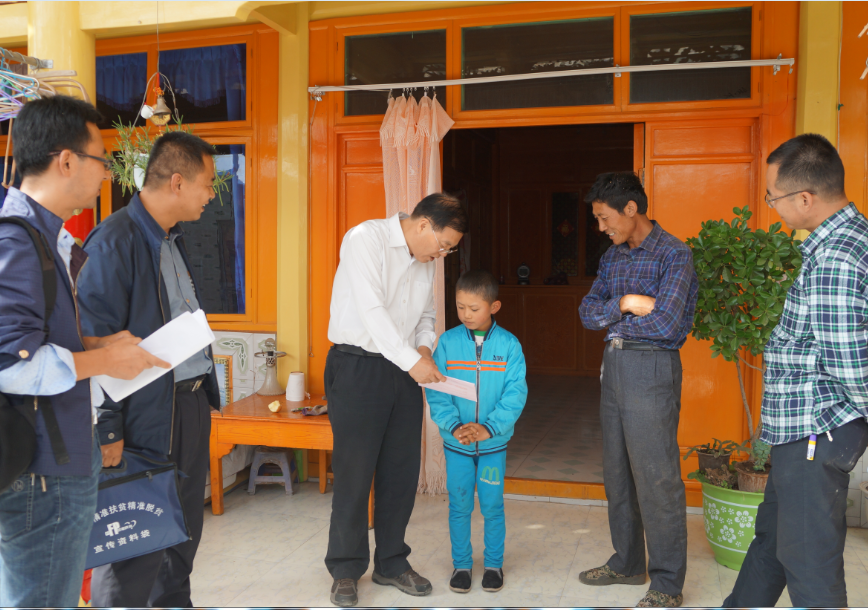 在拉布小学困难学生郭运、郑海霞家中,尚主委对两位小学生及其家人进行了走访慰问,并代表甘肃民进企业家联谊会“阳光育才基金”,为他们每人送去了1000元助学金。“这是一位民进企业家伯伯捐给你们的,希望你们好好学习,健康成长!”